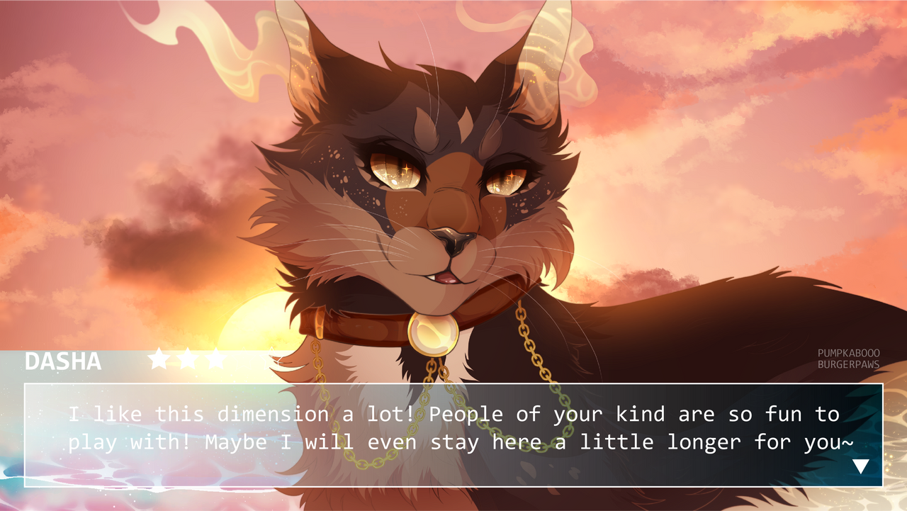 A shaded bust with a simple background, along with an UI that includes name, a 5-star affinity meter, and a short line of dialogue. Meant to emulate a dating sim-like videogame. Price: $50